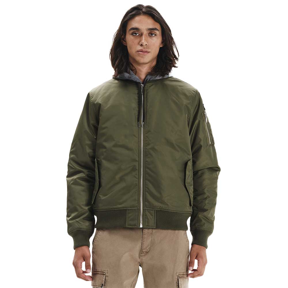 Το EMERSON Flight Jacket Olive φέρνει το κλασικό army στυλ στην καθημερινότητα με μοντέρνες λεπτομέρειες. Κατασκευασμένο από ανθεκτικό 100% nylon twill, διαθέτει αποσπώμενη κουκούλα από jersey ύφασμα, πολλαπλές εξωτερικές και εσωτερικές τσέπες για πρακτικότητα και πλεκτό λάστιχο σε μανσέτες και τελείωμα για προστασία από τον κρύο αέρα ❄️. Η θήκη για στυλό στο μανίκι και τα ανοίγματα εξαερισμού ολοκληρώνουν το utility design. Ιδανικό για layering πάνω από φούτερ για αυθεντικό casual χειμερινό look.