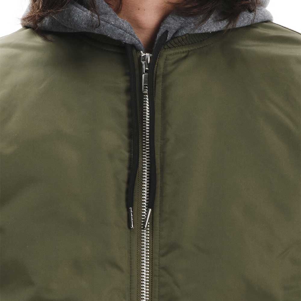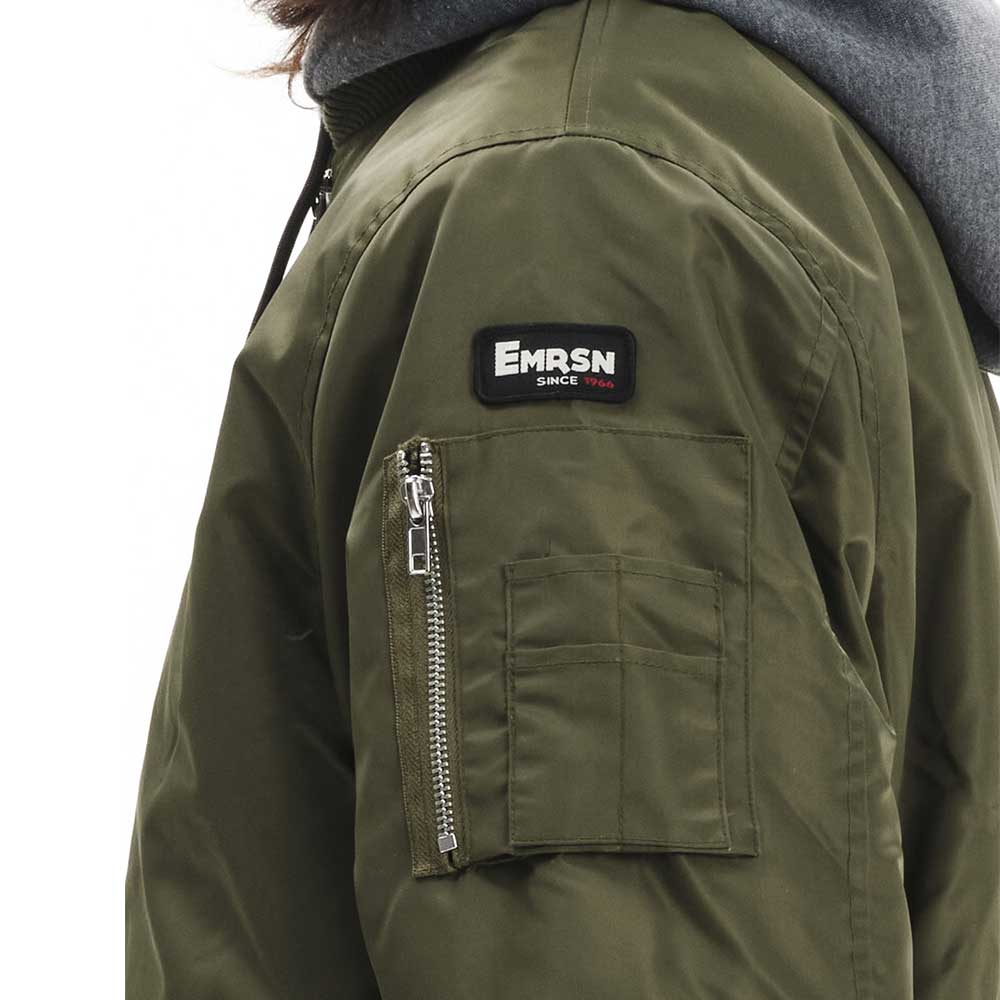 Το EMERSON Flight Jacket Olive φέρνει το κλασικό army στυλ στην καθημερινότητα με μοντέρνες λεπτομέρειες. Κατασκευασμένο από ανθεκτικό 100% nylon twill, διαθέτει αποσπώμενη κουκούλα από jersey ύφασμα, πολλαπλές εξωτερικές και εσωτερικές τσέπες για πρακτικότητα και πλεκτό λάστιχο σε μανσέτες και τελείωμα για προστασία από τον κρύο αέρα ❄️. Η θήκη για στυλό στο μανίκι και τα ανοίγματα εξαερισμού ολοκληρώνουν το utility design. Ιδανικό για layering πάνω από φούτερ για αυθεντικό casual χειμερινό look.