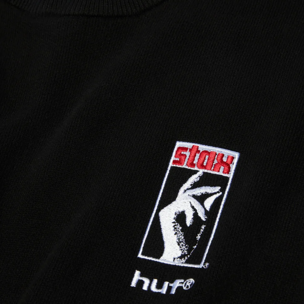 Το HUF x Stax Records Black Moses Knit Sweater αποτίει φόρο τιμής στο θρυλικό άλμπουμ “Black Moses” του Isaac Hayes, συνδυάζοντας μουσική ιστορία και streetwear αισθητική.