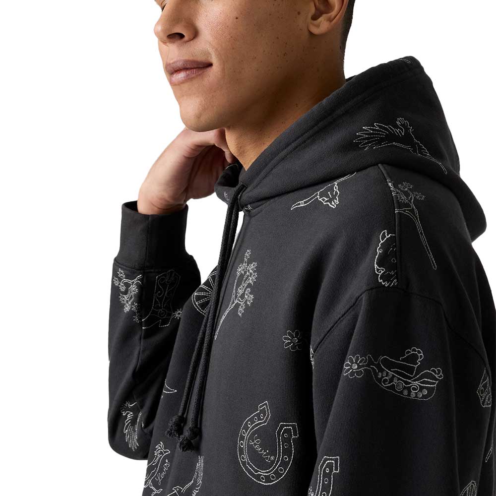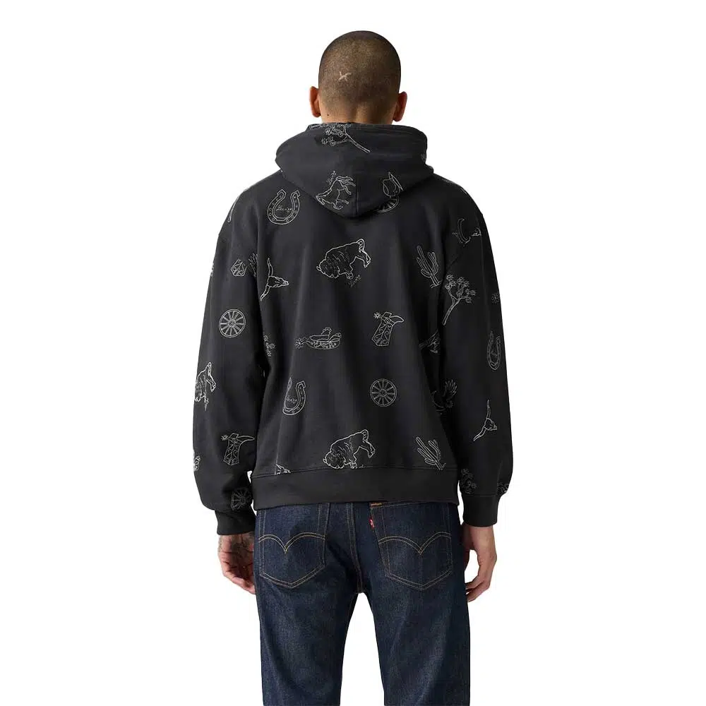 Το Levi’s® Relaxed Fit Graphic Hoodie Western Phantom Black δίνει μια μοναδική western αισθητική στο casual streetwear. Κατασκευασμένο από απαλό brushed fleece, προσφέρει άνεση και ζεστασιά, ενώ η relaxed γραμμή το κάνει ιδανικό για καθημερινές εμφανίσεις. Ξεχωρίζει χάρη στα all-over κεντημένα σχέδια που χαρίζουν αυθεντικό χαρακτήρα. Ολοκληρώνεται με κουκούλα με κορδόνι και κλασική τσέπη καγκουρό.