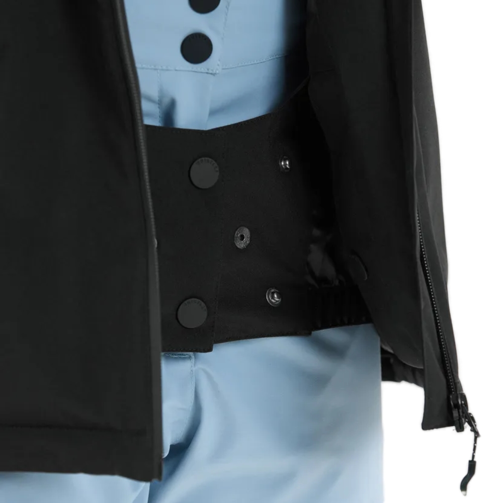 Το γυναικείο ski jacket σε μαύρο χρώμα είναι το απόλυτο combo από στυλ, ζεστασιά και τεχνική προστασία. Με αδιαβροχοποίηση 10.000mm, αναπνευσιμότητα 5.000g και διπλή στρώση υλικού, κρατάει άνετο body feel ακόμα και σε έντονο χιόνι. Αντιανεμικό, ζεστό και super functional — ιδανικό για alpine skiing ή cold-weather outfits στο βουνό.